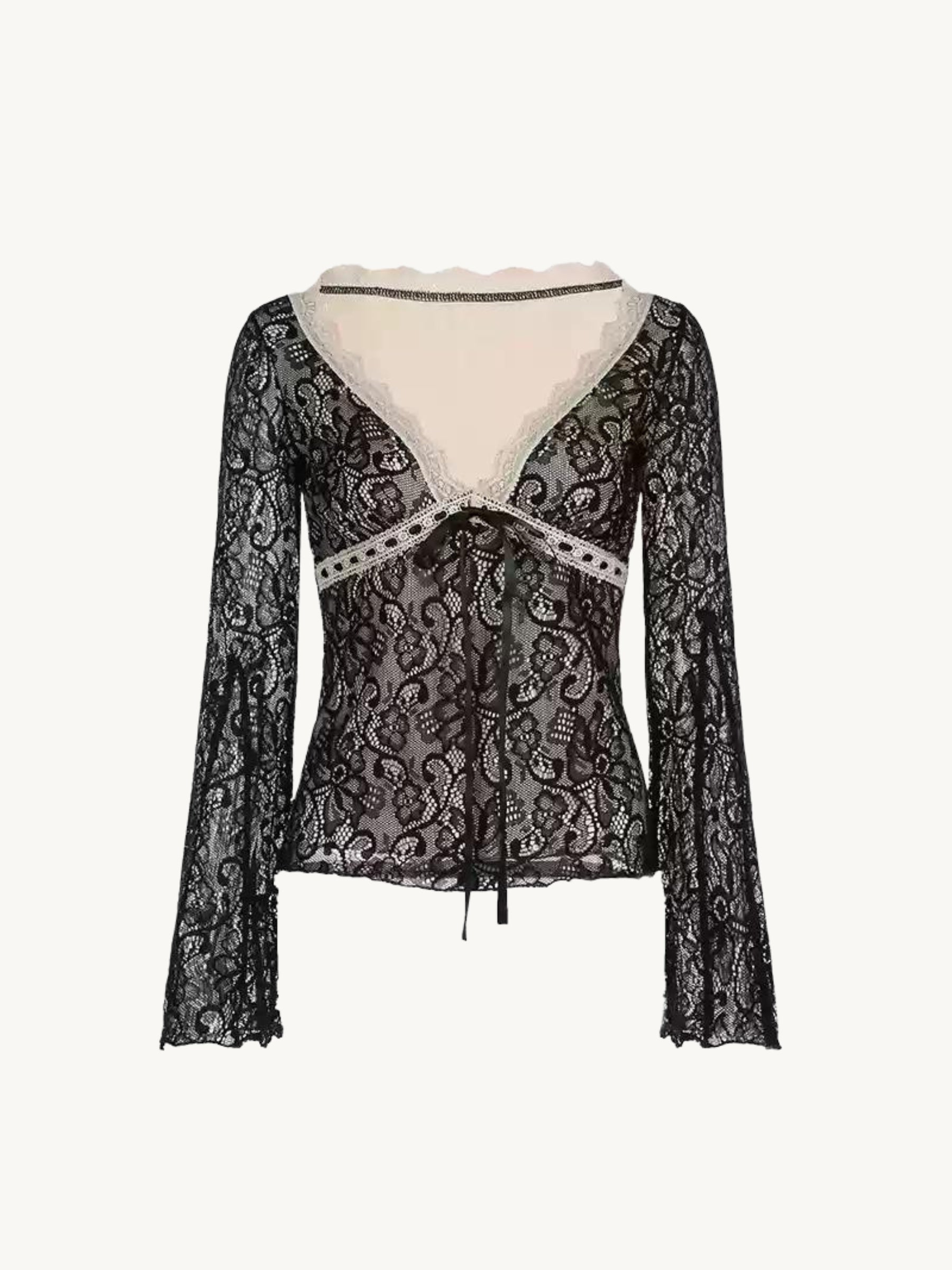 Top Dentelle | Laçage | Manches Évasées | Idéal pour soirées chics