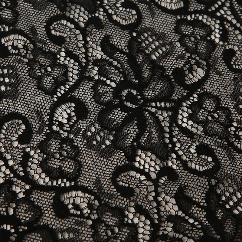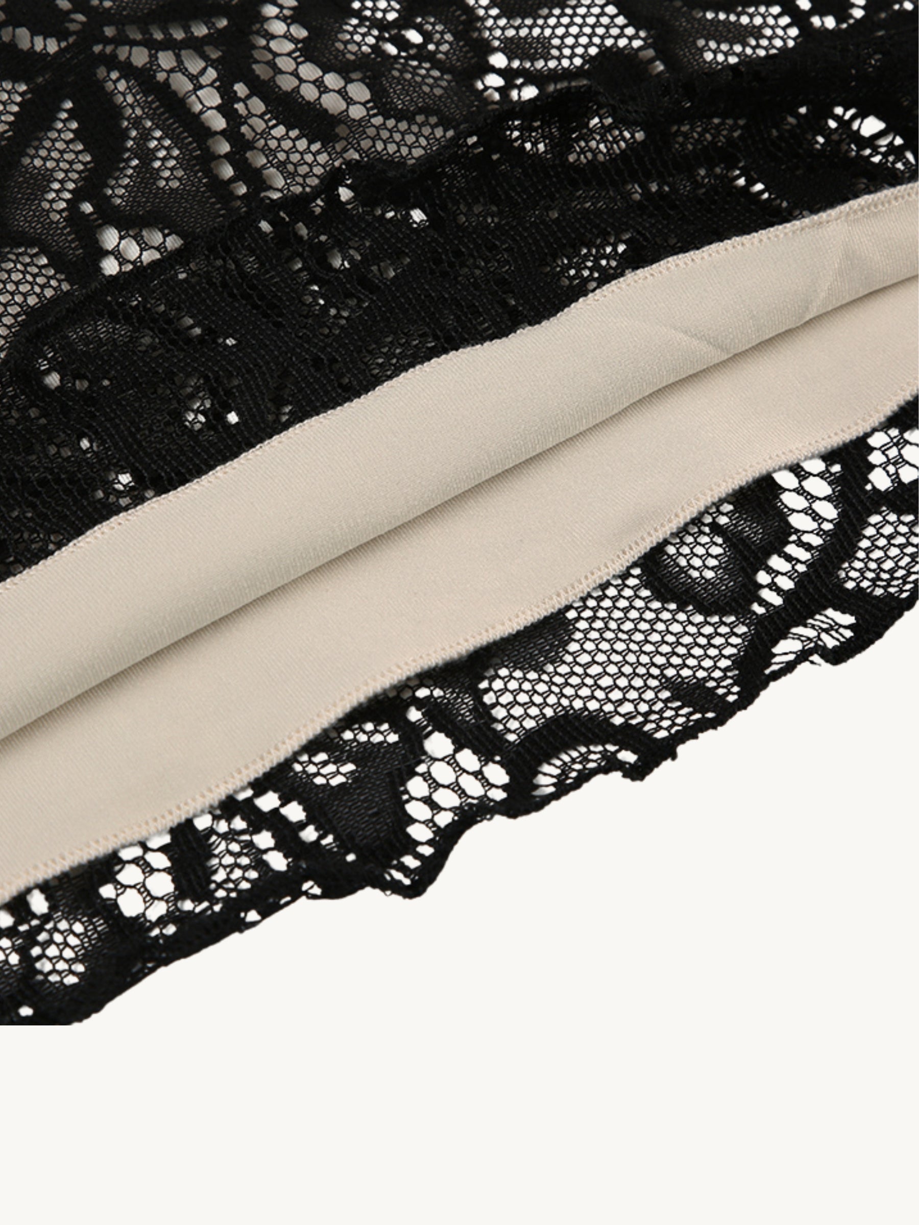 Ce top manches longues dévoile un jeu de transparence délicat grâce à sa maille dentelle florale. Le laçage sous la poitrine et les finitions festonnées apportent une touche romantique et féminine.